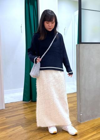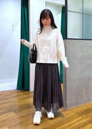・丸みを帯びたフォルムは女性らしいスカートスタイルにも合わせやすい。
