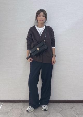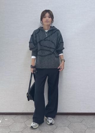 ・きれいめなワイドパンツに、外しアイテムとして合わせるとオシャレ。