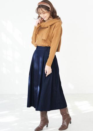 デニムタックフレアスカート
