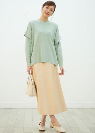 ・優しいカラートーンなので、ブラックやネイビーのトップスで全体を引き締めたり、またトーン・オン・トーンコーデでナチュラルに仕上げたり、カラーコーディネートで着こなしの変化をお楽しみいただけます。