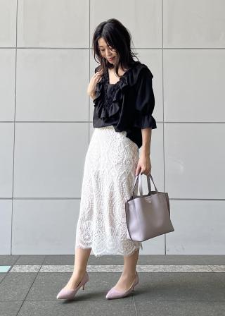 オススメコーデ:ニットやブラウスを合わせて女性らしいスタイルに。Tシャツやカットソーを合わせるとミックススタイルになります!