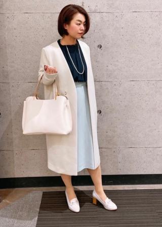 着丈は162㎝で、座っても膝が隠れるお仕事着にちょうど良い丈感でした。