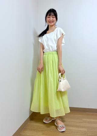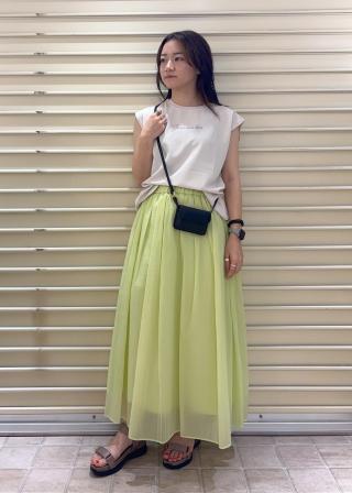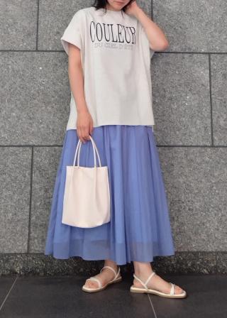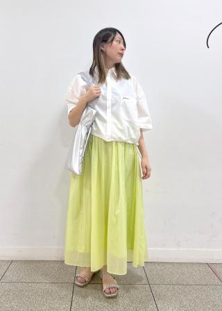 ・ふわっと軽い、シアーなナイロン素材を使ったギャザースカート。