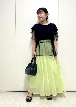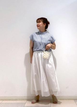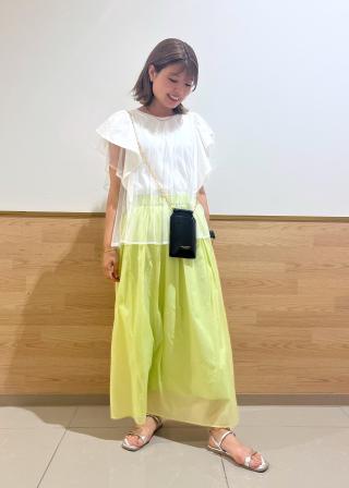 ・ふわっと軽い、シアーなナイロン素材を使ったギャザースカート。