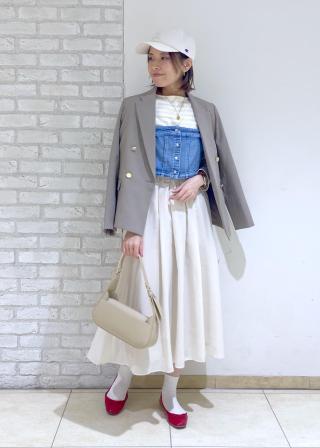 ・アイボリーはデニムジャケット合わせで爽やかに。