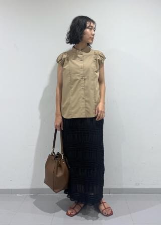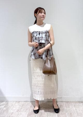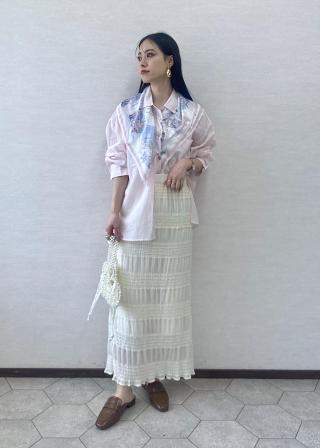 ・シンプルなTシャツ合わせでも華やぎのあるスタイルが完成。