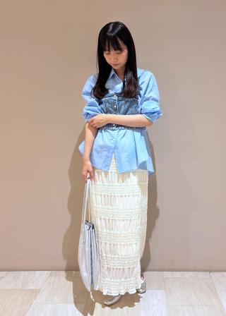 ・シンプルなTシャツ合わせでも華やぎのあるスタイルが完成。