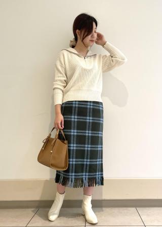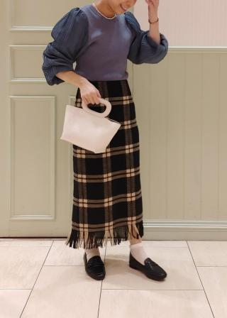 ・タイトなリブニットやブラウスに合わせてきちんと感のあるスタイルが完成。