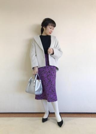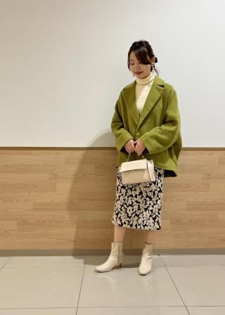 ・ふくらはぎほどの着丈で、ショートブーツに合わせたバランスがおすすめ。