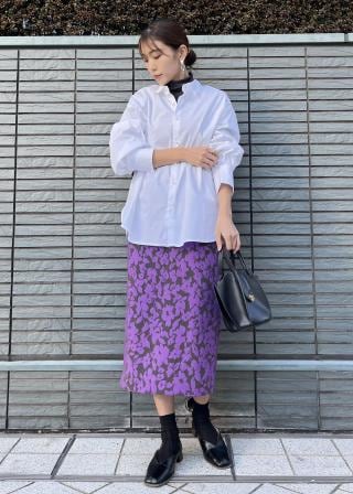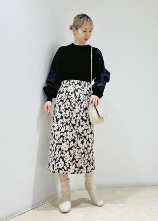 フラワージャガードスリムスカート