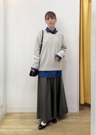 ・抜け感のある、ゆったりシルエットのニット合わせもおすすめ。