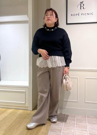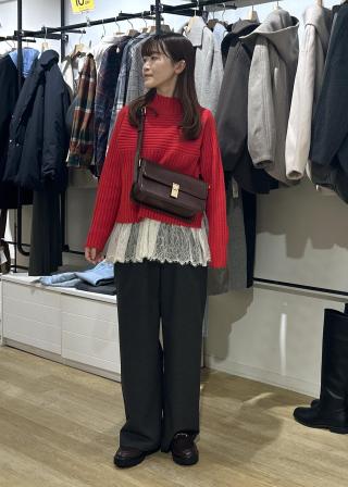 ・季節問わず使えるので秋冬はニットやスウェットの中に重ねてレースを裾から出したスタイリング、春夏はTシャツの上に重ねたスタイリングなど幅広いスタイリングを楽しめる。