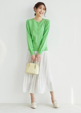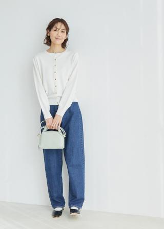 ・ベーシックで着回し力の高い、長袖クルーネックカーディガン。