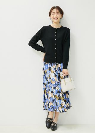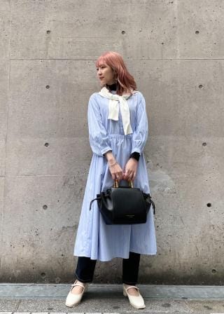 ・柄物ワンピースに羽織ってきれいめに纏めて。