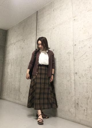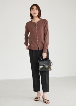 おすすめコーデ:空調の効いた室内で軽く羽織るのに便利なカーディガンです。着丈が長すぎないのでパンツでもスカートでも合わせやすいです。