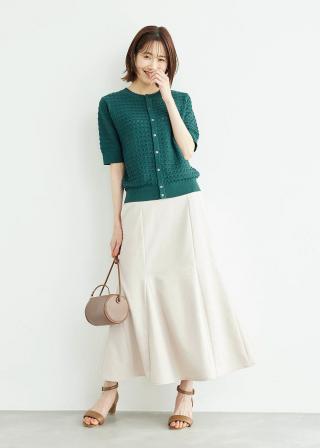・軽やかに纏える透かし柄の5分袖ニットカーディガン。