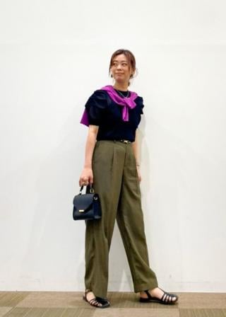 【おすすめコーデ】羽織りとしてはもちろん、肩がけにしてコーディネートのアクセントにするのもオススメです。