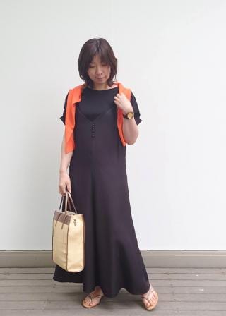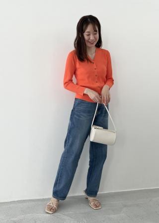 パンツにもスカートにも合わせられる為、UV対策に重宝しています。綺麗なオレンジ色で肌が明るく見える。