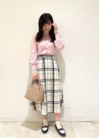 ・フレアラインのプリントスカートに合わせて、清楚な着こなしに。