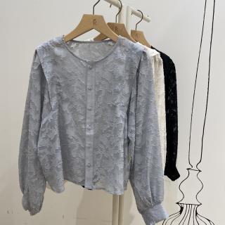 ・ブラウスとカーディガンの表情を併せ持った一枚。