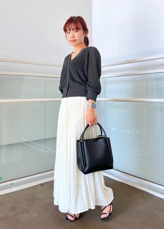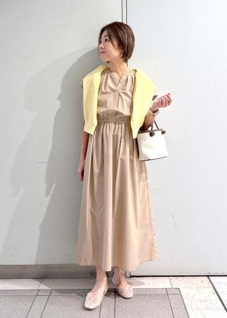 裾に絞りがある為、フレアスカートやワンピースの羽織りにもバランス良く着用できます。