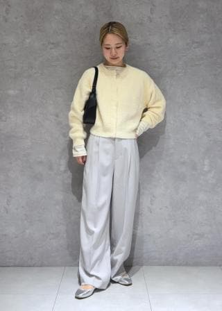 ・微濃淡のフェザー糸を2色合わせて編んだショート丈フェザーニットカーディガン。