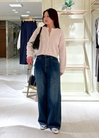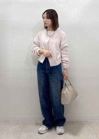 ・微濃淡のフェザー糸を2色合わせて編んだショート丈フェザーニットカーディガン。