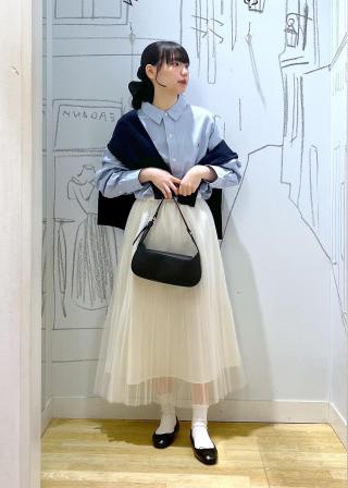 ・ゆったりとしたシルエットなので、スカートに合わせてずるっとシルエットもおしゃれ。