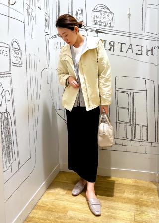 ・ゆったりとしたシルエットなので、スカートに合わせてずるっとシルエットもおしゃれ。