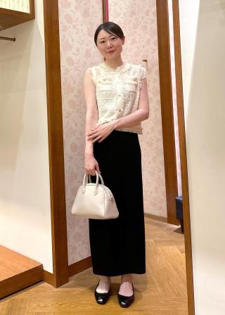 148cmでTサイスだとヒップが半分ぐらい隠れる丈で安心感もあり、短い丈より上品な印象になります。