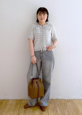 薄手のサマーツイード素材で、柔らかいニット素材なのでチクチク感などは気になりにくかったです。