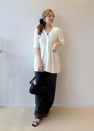 モチッとした肌触りがいい生地感に、ペプラムニットなので1枚で女性らしく着ることができるアイテムです!