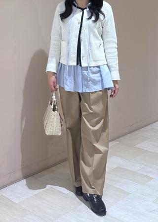 ・きれいめパンツと合わせる、オフィスにも最適な上品スタイル。