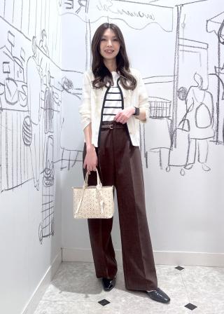 ・きれいめパンツと合わせる、オフィスにも最適な上品スタイル。