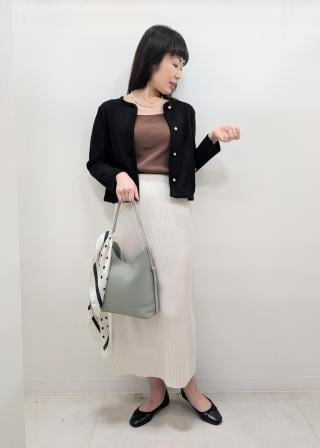 ・裾デザインを覗かせる、メリハリの利いたトレンドのレイヤード。