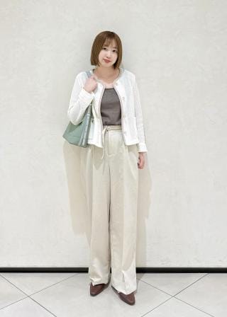 ・きれいめパンツと合わせる、オフィスにも最適な上品スタイル。