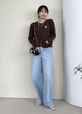 【ROPE' PICNIC×ハローキティ】ワッペンケーブルニットカーディガン