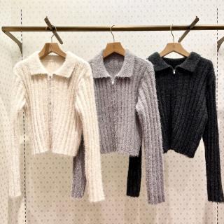 【一部店舗限定】ラメフェザー衿付ジップカーディガン