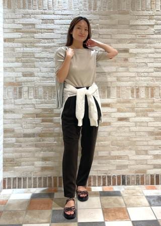 深めのVネックが大人らしく、ヘルシーな印象与えてくれます。