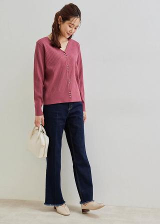 おすすめコーデ:きれいめなカーディガンなので通勤着やフレアスカートを合わせたフェミニンコーデがおすすめです。お色味が春カラーが多いので、春先にも活躍します。前後2wayなのでパールボタンを後ろにしてプルオーバーとしても着用できます。肩がけで差し色使いにも◎親子コーデ(GRK61000)対応なのでそちらもおすすめです。