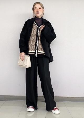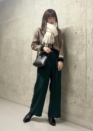 おすすめコーデ:レトロクラシックな幾何学模様がポイントなのでスッキリとした無地のパンツやアイラインスカートとの相性がよいです。