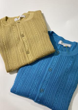 ・ノスタルジックなムードを纏った、ケーブル編みの長袖クルーネックカーディガン。