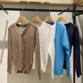 大人な透け感が魅力的。季節の変わり目に便利なニットカーデ。
