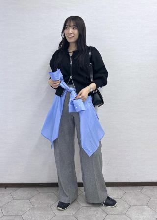 長めのインナーを着て羽織るとヒップはカバーできてウエスト位置は高く見えるのでスタイルアップが叶います(^^)