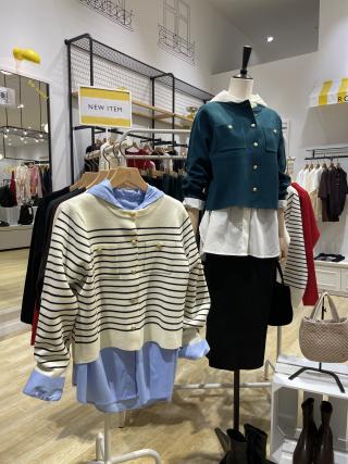 ・Mサイズ:通常丈(フロントボタン5個)、Lサイズ:ロング丈の展開(フロントボタン6個)。