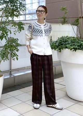 ・季節感を高める伝統的なノルディック柄が顔周りを華やかに演出。