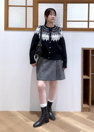 ・シンプルなタートルニットやシャツとの重ね着で大人っぽい着こなしもおすすめ。