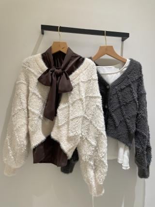 ダイヤチェック柄ループフェザーカーディガン