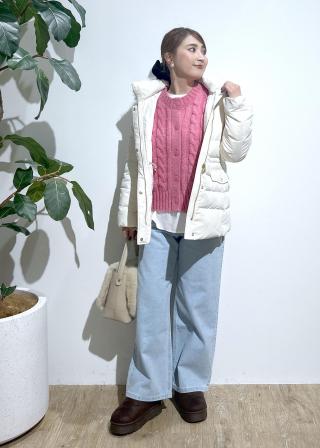 冬のコーデを華やかに彩る、立体ケーブルのショートニット