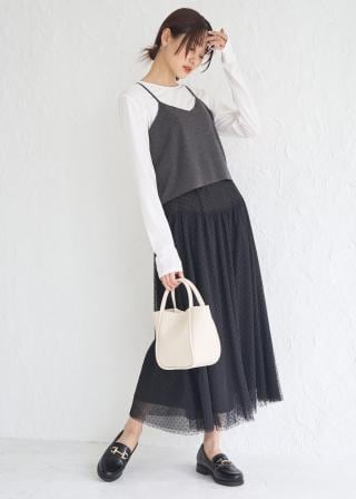 ※スタッフスタイリングの画像、動画は野外の光や照明の当たり具合で、実際の商品の色味と異なる場合がございます。 実際の商品に近い色味は商品ページをご確認ください。 ※同シリーズの「ミニ丈ニットワンピース」 「ミドル丈ニットカーディガン」はこちら。